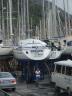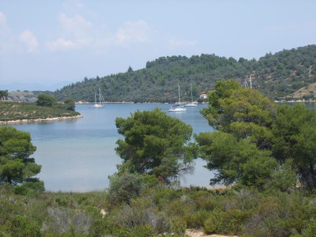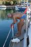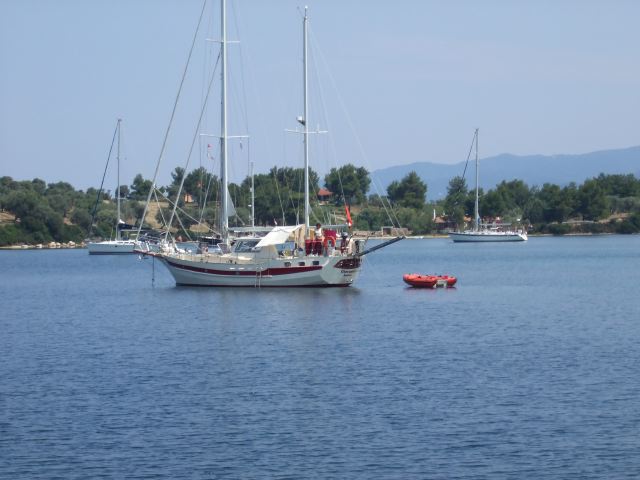Voilà, assez travaillé, place aux vacances !! Nous avons fait 470 Nm depuis Marmaris (env. 840 km), sans problème…et sans mal de mer pour Trudy, que demander de plus. Nous sommes provisoirement à couple d’un gros cata-ventouse, et les 2 voiliers Allemands dont nous convoitons la place nous préviendront de leur départ…2-3-4-5-6 jours ? No problem. La housse est sur le génois, y’a de l’eau sans restriction, à Corinthe nous avons vidé un jerrykan de 20 l de mazout pour embarquer de la sans plomb pour la génératrice, nous sommes parés jusqu^à fin août, le temps de laisser les flottilles et autres charter gâter ailleurs la vie d’autres que nous ! Ici à Trizonia, on a tout pour être malheureux : pas de voiliers de location, que des voyageurs, pas de voitures ni de motos, mais un écran géant pour la finale DE-ESP de ce soir !! Ah ! pour Bertrand et la petite histoire, Helena est arrivé de Levkas 3 h après nous pour passer juillet-août, sans que l’on se soit concertés, on n’avait pas de nouvelles d’eux depuis Noël ! Bon été à tous, bisous Jurg & Trudy