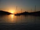 Ben faut se rapprocher de Corinthe, donc une petite escale à Korfos où nous trouvons un corps-mort accueillant qui nous dispense de la corvée de l’ancre et, le 25 juin, dernière étape mer Egée sur l’entrée Est du canal. Sans histoire, peu de voile, et passage du canal vers 11h30…c’est beau d’arriver tôt, : il y a 2 places faciles en bout de ponton dans le petit port de Corynthe, et ils sont libres ; à 17 h, plus une place et nous aurons un sympathique british à couple. L’Ouest qui domine généralement dans le golfe de Corynthe n’étant heureusement pas au rendez-vous pour les 2 prochains jours, nous affêtons un taxi pour un gros avitaillement en vue du séjour prolongé à Trizonia : env. 150 kg de boissons et nourriture…dure journée, et 250 € en moins dans la caisse de bord, en plus des 150 pour les droits de traversée du canal. Comme il fait beau, que l’Ouest n’est pas fort, nous décidons de faire une escale avant Trizonia : ce sera tout près de Itea-Galaxidi, dans une jolie baie : Anemokambi. Avec en prime 2 h de superbe voile à 7 n de moyenne, sans vagues…le rêve ! Nous avons encore une fois la chance de trouver un accueillant corps-mort et passons une soirée et une nuit magnifiques, avec au menu laitues-lard fumé, la mer à 25°…humm ! Le lendemain, dernière étape, et nous arrivons à Trizonia à midi. Tournée de bonjours aux connaissances et visite aux chats. La petite qu’on hébergeait le printemps passé est déjà à bord…et on n’a pas été la chercher !